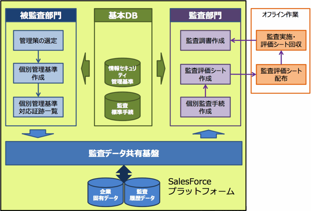 • セールスフォースの機能を用いて、詳細管理策への集約や管理策への集約を行い、監 査人が意見形成をします。