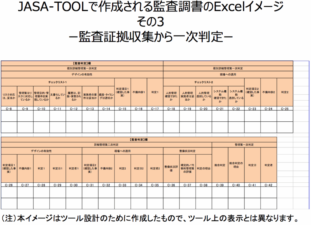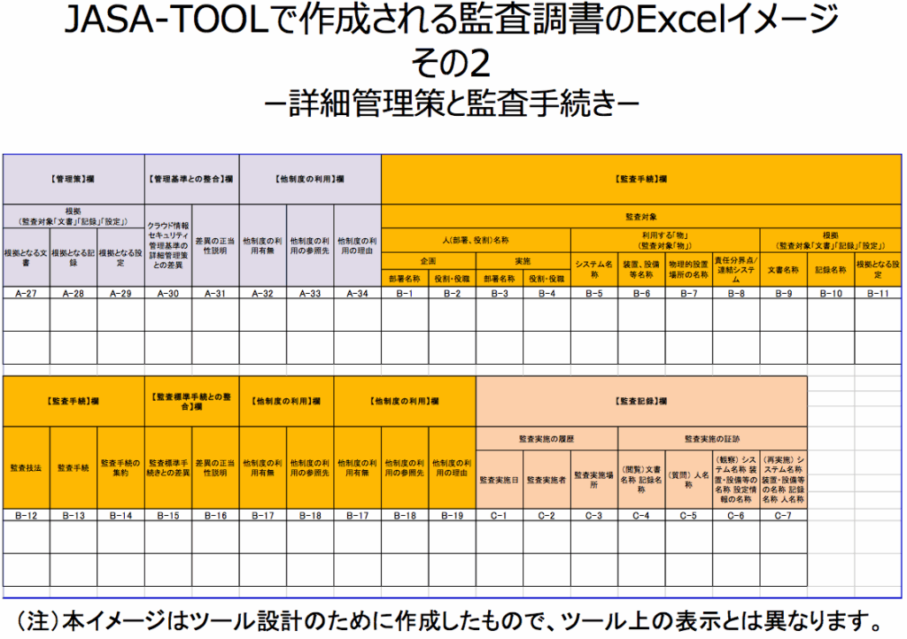 JASA-TOOLで作成される監査調書のExcelイメージ