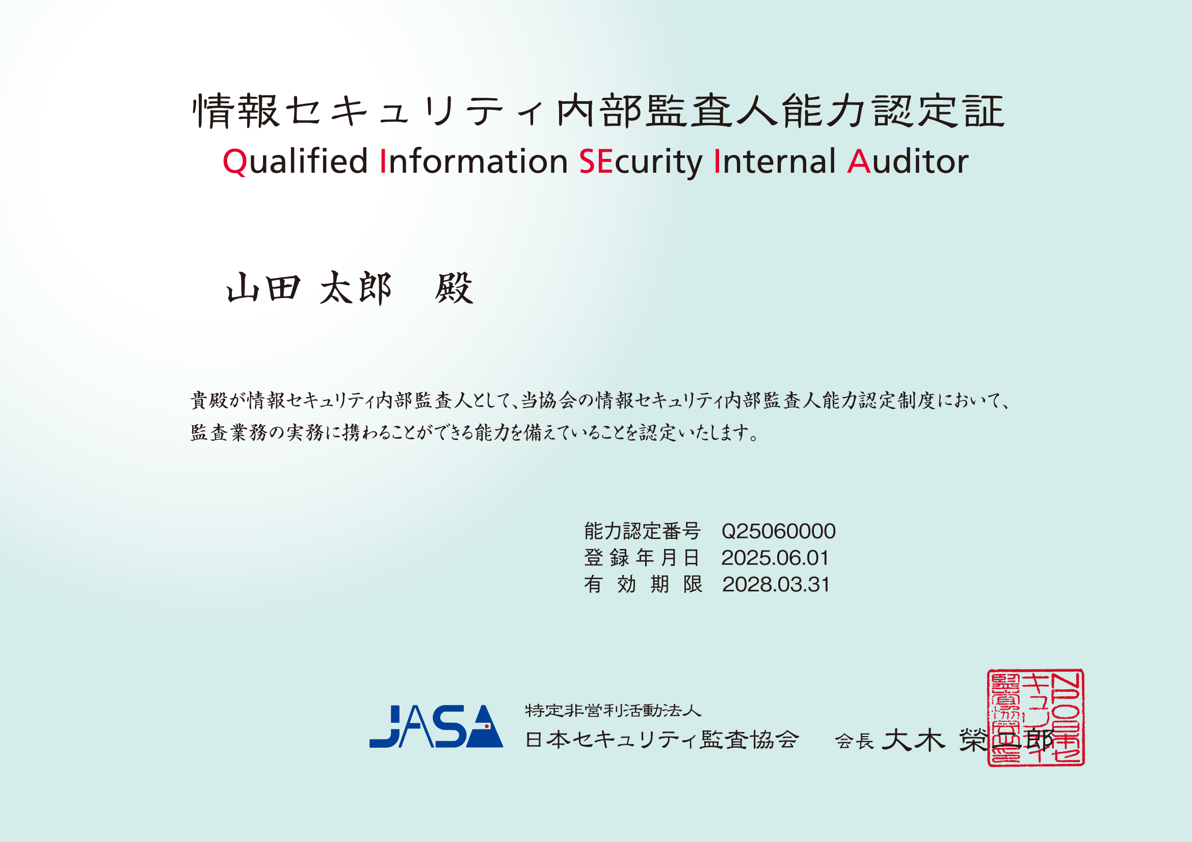 能力認定試験は、情報セキュリティ内部監査人能力認定制度で認定する情報セキュリティ内部監査人の質を実証するものであり、当能力認定試験への合格が「情報セキュリティ内部監査人」の能力認定要件となっております。